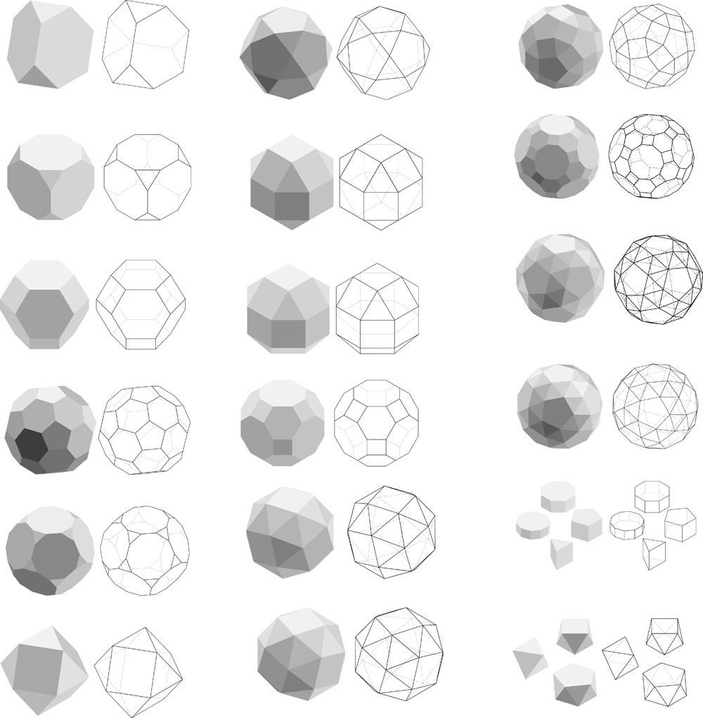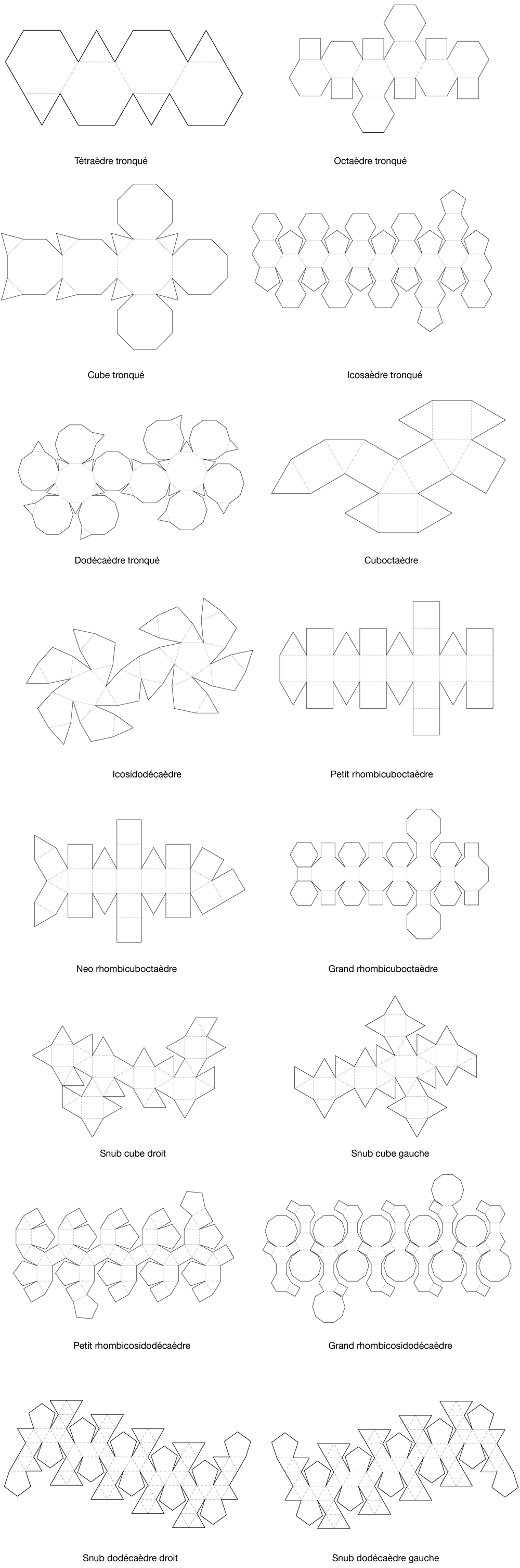Polyèdres semi-réguliers.Développés.